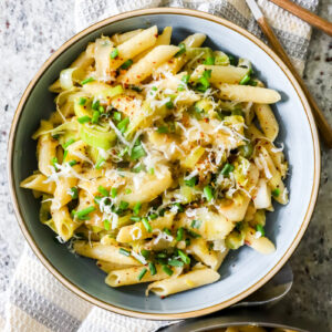 Een simpele, gemakkelijke en goedkope penne met prei. Een pasta boordevol smaak!